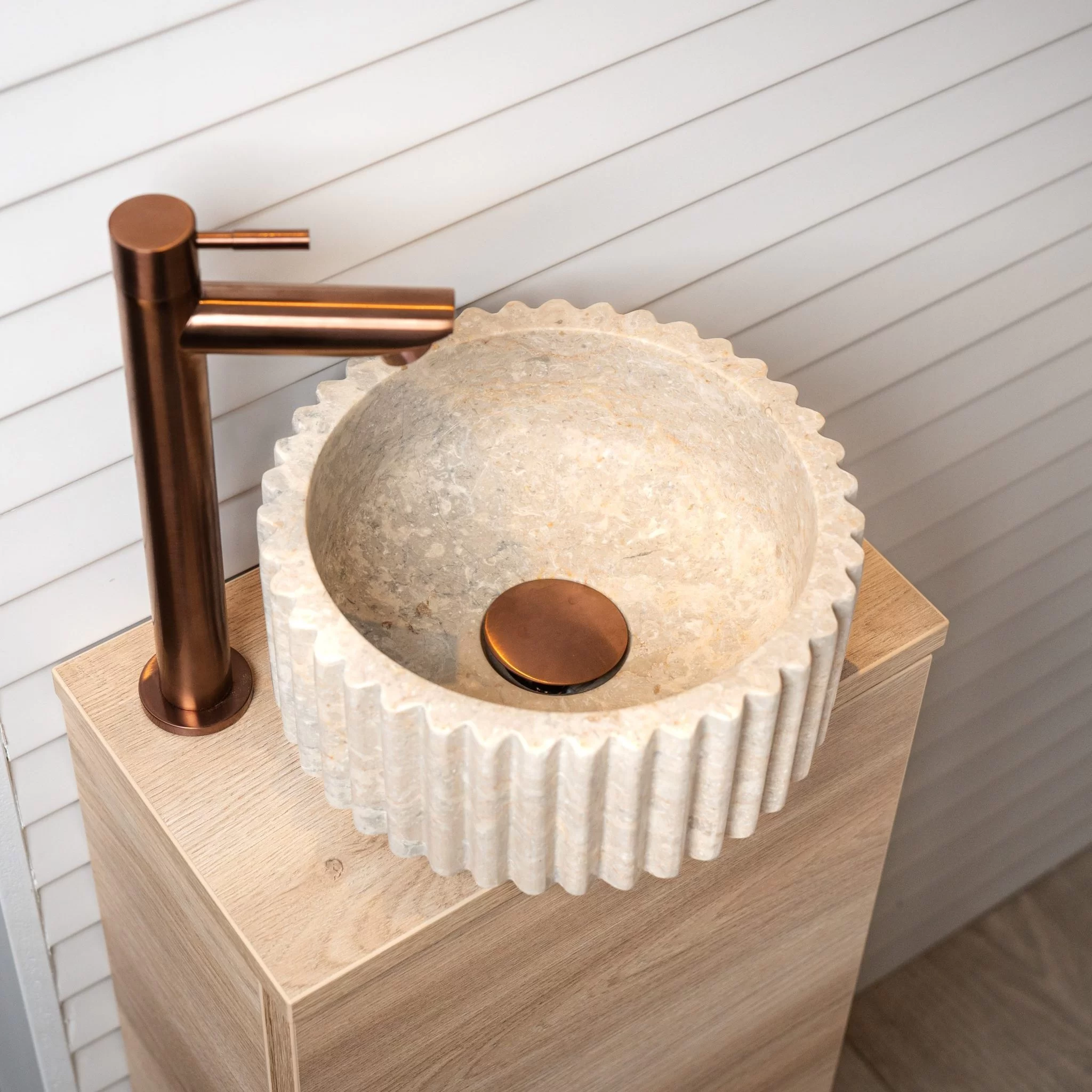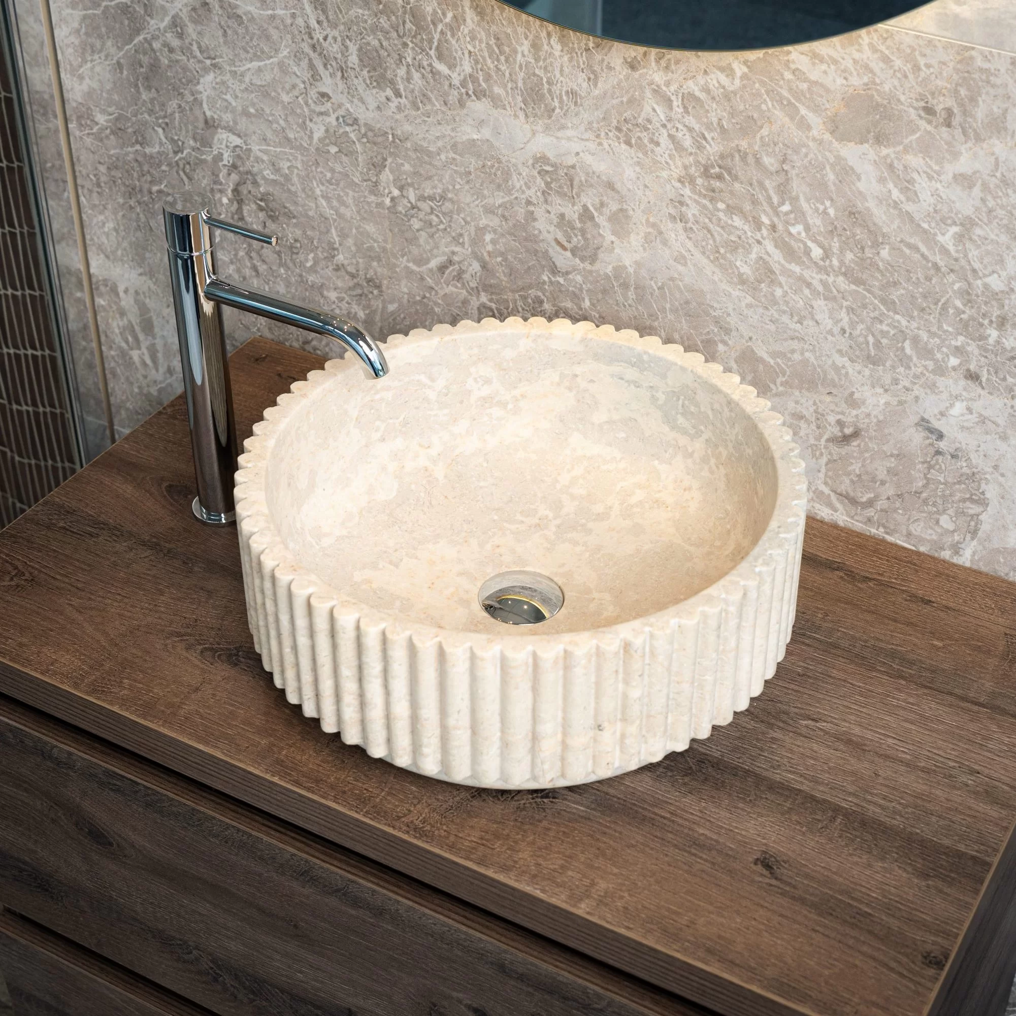 De Loutro marmeren waskommen zijn vervaardigd uit natuurlijk marmer en stralen tijdloze elegantie uit. Met hun verfijnde afwerking en unieke marmerstructuur geven ze iedere badkamer een luxe en serene uitstraling. Elke kom is een uniek natuurproduct, waardoor geen enkel exemplaar hetzelfde is. Perfect voor wie stijl en ambacht wil combineren in een modern of klassiek interieur.